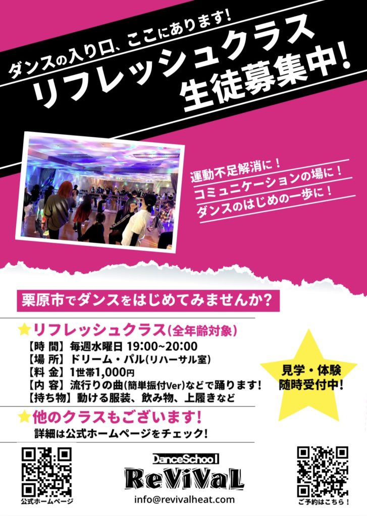 ダンススクールReViVaLの公式HPです。栗原市・登米市でダンスレッスンを行っています。初心者大歓迎ですので、お気楽にお問合せください!