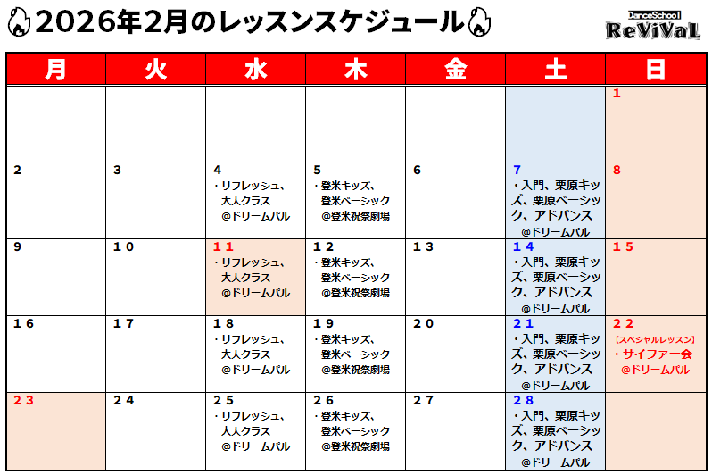 🔥2月レッスン・イベントスケジュール🔥