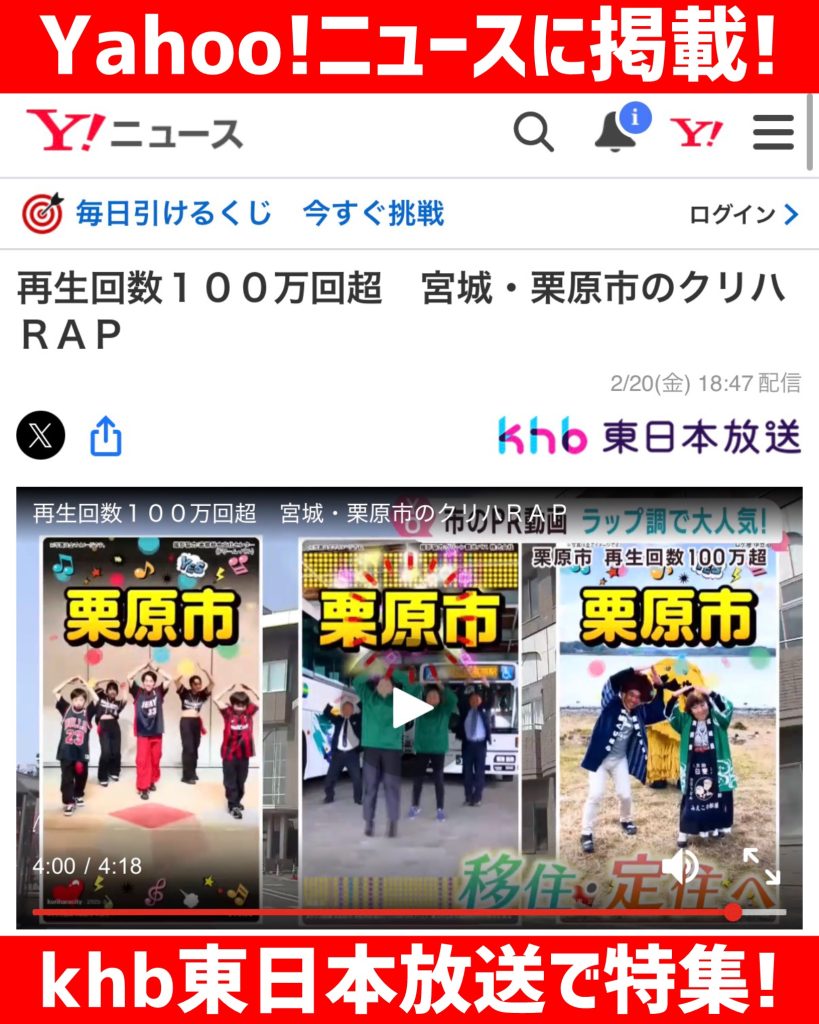 「 #クリハRAP 」がKHB東日本放送で特集され、Yahoo!ニュースにも掲載されました😆